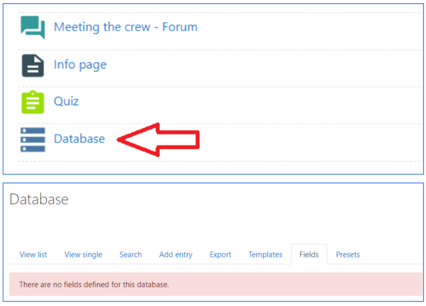 To access a database in the platform, click on the Database title in the homepage of the course.