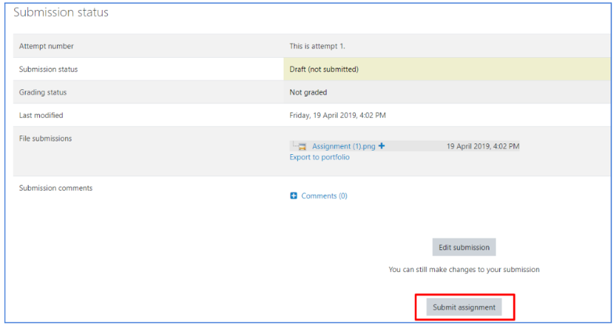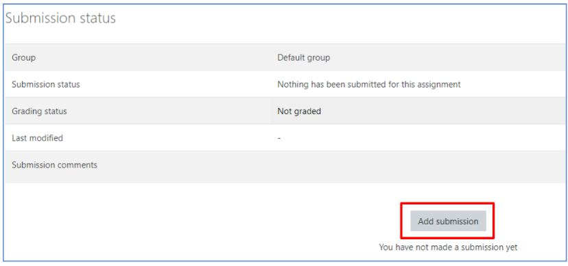 To begin submission of an assignment, go to the assignment page and click “add submission”.
